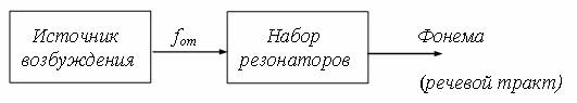 Источник возбуждения создает импульсы основного тона, частота следования которых непрерывно меняется в процессе формирования речи. Речевой тракт при образовании гласных звуков работает как набор резонаторов, в которых происходит фильтрация сигнала возбуждения. В результате образуется спектральная картина, содержащая ряд максимумов. Максимумы соответствуют резонансам тракта (это и есть форманты). Таким образом, форманты - это некоторая частотная область концентрации энергии в спектре звука. Используют от двух до шести формант в зависимости от требуемой точности анализа речи. Суммарный выходной сигнал формантных фильтров (резонаторов) достаточно близко соответствует частотному спектру речи человека, и наш слух воспринимает его как речевое сообщение.