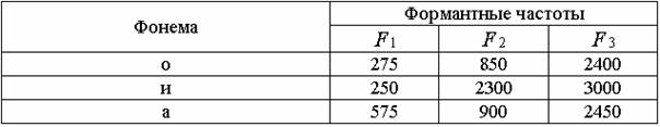 Приведем таблицу формантных частот для некоторых фонем гласных звуков.
